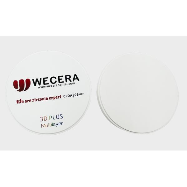 Wecera 3D Plus Multilayer Zirconia Block is made of biological nano zirconia powder 100% from Tosoh with Cold Isostatic Pressing production technology, It is the most natural zirconia in the market, It changes color, strength, and translucency gradually from cervical to incisal part at one zirconia disc.